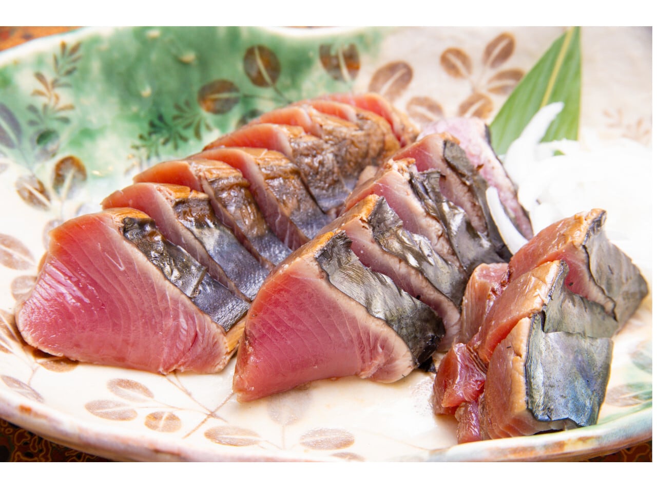 藁を燻し炙る特殊な製法で作る事で、藁の風味が乗り臭みを抑えたkiwami水産特製のかつおのたたきです。